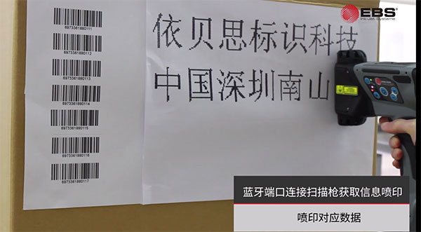 EBS手持噴碼機可連接各種掃描儀器,實現即掃即噴功能。一般情況下,掃描儀器掃描條碼/二維碼獲取生成條碼、二維碼的內容直接噴印出來。