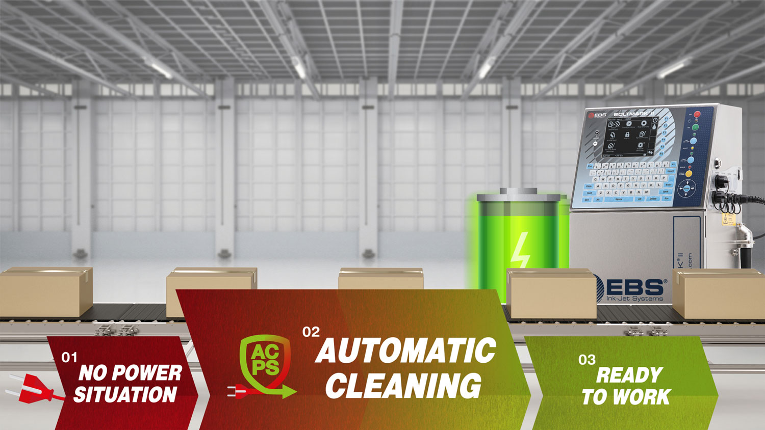 EBS6900小字符噴碼機帶斷電保護功能,標配UPS智能備用電源。讓噴碼機不懼各種突發情況: