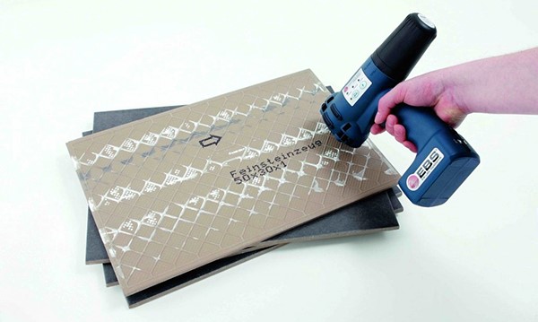 建筑裝飾材料在生產過程中,其工作環境需要在不同的溫度、濕度、酸堿、粉塵惡劣下完成,因此對于標識設備要求嚴格,EBS手持噴碼機采用了創新的“電磁閥式噴頭”以及人造紅寶石材質噴嘴,具有耐磨、耐高溫、抗腐蝕、不堵噴頭等優點,在面對不同惡劣環境下依舊能保持穩定的性能,減少了設備維護。
