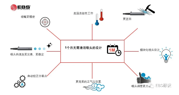 EBS流水線小字符噴碼機能夠智能適應(yīng)各種環(huán)境變化的設(shè)計,24小時穩(wěn)定生產(chǎn)。保證企業(yè)生產(chǎn)穩(wěn)定進行。全新的噴頭結(jié)構(gòu)化模塊設(shè)計,雙噴頭電磁閥,清洗閥門設(shè)計,配合全新工藝的紅寶石激光打孔工藝,噴嘴孔徑圓潤,不堵塞噴嘴。